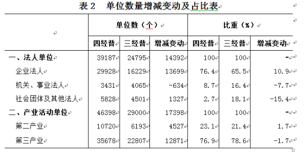 1.四经普法人单位数比一经普增长1.39倍