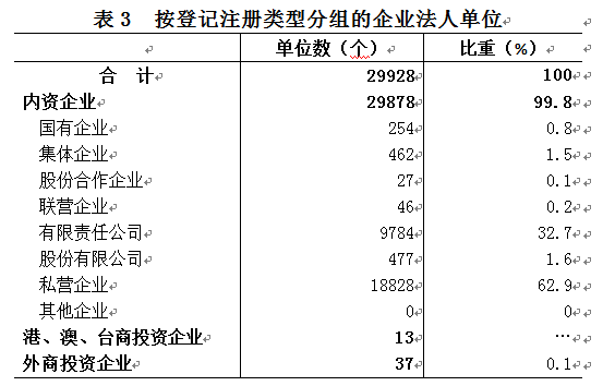 第四次经济普查资料显示:2018年末,全市共有从事第二产业和第三产业活动的法人单位39187个,比2013年末(2013年是第三次经济普查年份,下同)增加14392个,增长58.0%;产业活动单位46398个,比2013年末增加17398个,增长60.0%,经济活动能力显著增强。