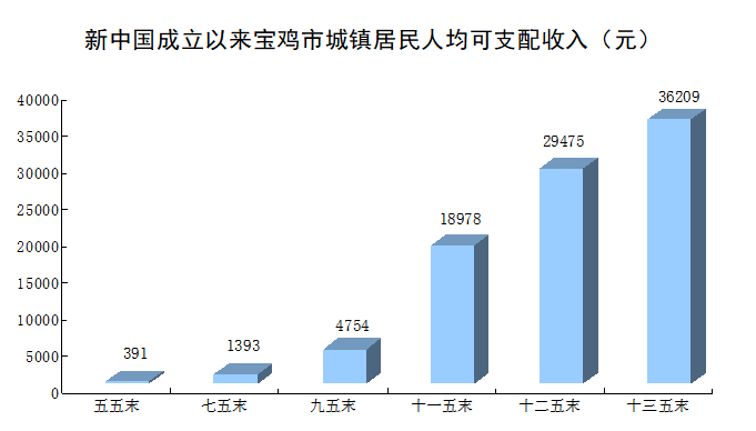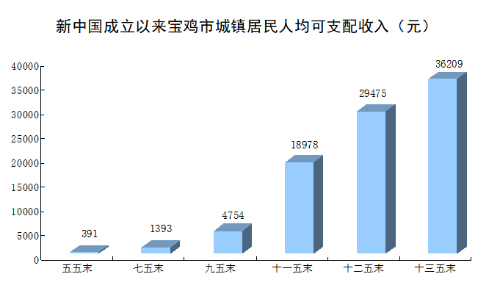 人民生活更加美好。1949年,宝鸡农民人均纯收入仅63元,1980年,城镇居民人均可支配收入和农民人均纯收入分别为391元和149元,1996年分别突破3000元和1000元。2007年城镇居民人均可支配收入突破万元,2020年达到36209元;2016年农民人均纯收入突破10000元,2020年达到14189元。1952年全市居民储蓄余额235万元,1978年增加到1.22亿元,2020年快速增加到2143.22亿元。人均储蓄额由1952年的1.65元增加到2020年的6.45万元。2020年,城镇居民人均居住面积达到36.8平方米,每百户居民家庭拥有冰箱97台,家用洗衣机100台,家用汽车30辆。2020年,农村居民人均居住面积达到37.0平方米,每百户居民家庭拥有冰箱70台,家用洗衣机97台,家用汽车19辆。