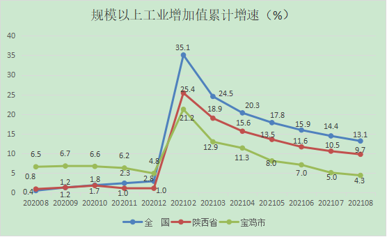 今年以来,宝鸡市委、市政府深入学习贯彻习近平总书记来陕考察重要讲话精神,大力实施工业强市“1459”工程,全力以赴推技改、促转型、稳增长,打造高质量发展新格局,全市工业稳定增长。1-8月,宝鸡市规模以上工业企业(不含军工企业)总产值同比增长9.6%,增加值增长4.3%,增加值比2019年增长11.1%,两年平均增长5.4%,两年平均增速位列全省第5名。
