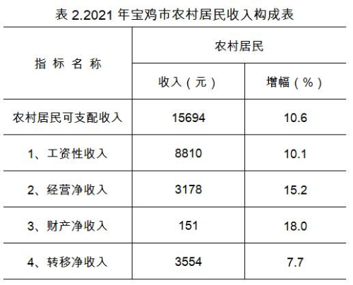 2021年是战胜疫情、复工复产的一年,是实施脱贫攻坚与乡村振兴有效衔接的第一年,宝鸡市委市政府统筹推进疫情防控和经济社会发展,大力实施“一四五十”发展战略,扎实做好“六稳”工作,全面落实“六保”任务,保障了城乡居民收入持续增长。
