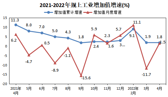 1-4月,全市927户规模以上工业企业(不含军工企业)完成总产值较上年同期增长6.0%,实现增加值增长1.8%;4月当月,全市规模以上工业增加值增长1.5%,月度速度由负转正。