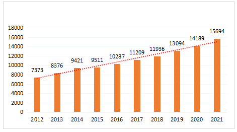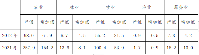 表1.2012与2021年农林牧渔服务业经济总量对比[注1](单位:亿元)
