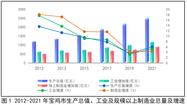 党的十八大以来,宝鸡市坚持以习近平新时代中国特色社会主义思想引领高质量发展实践,始终将工业立市、工业强市作为经济社会发展核心,以深化供给侧结构性改革为主线,以优势产业延链补链强链为抓手,以改革创新为根本动力,坚持稳中求进工作总基调,把握新发展阶段,贯彻新发展理念,构建新发展格局,工业经济发展韧性和潜力不断增强,结构和质量持续优化,整体实力显著提升。