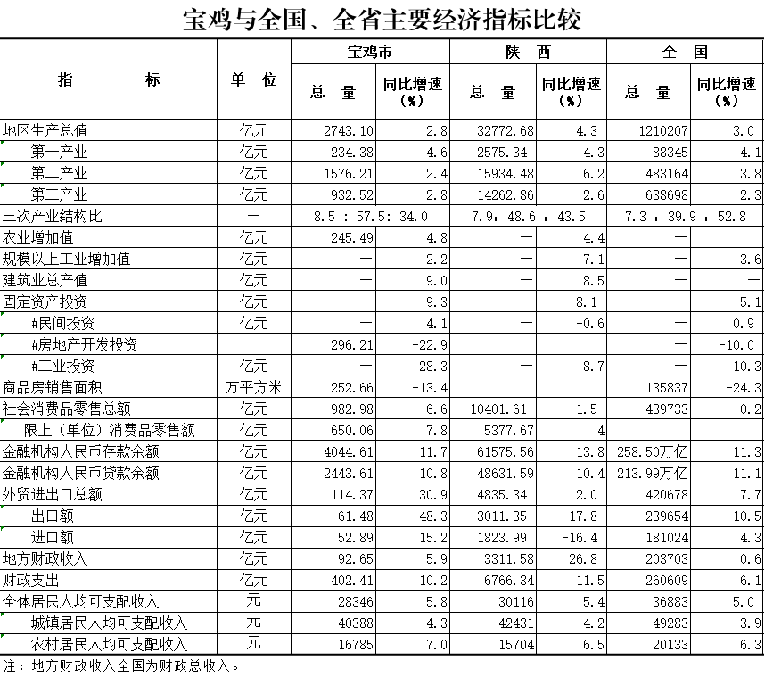 宝鸡与全国、全省主要经济指标比较 | |||||||