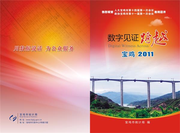 为了热烈祝贺宝鸡市人大第十四届第一次会议、宝鸡市政协第十一届第一次会议胜利召开,满足各位代表了解宝鸡经济社会发展,鼓舞干劲,服务领导决策,宝鸡市统计局策划编印的《数字见证跨越 宝鸡2011》宣传册,现已编印发送到两会代表手中,受到各位代表的肯定和赞赏。
