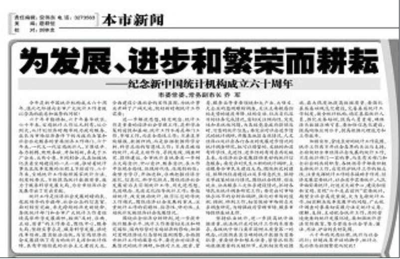 今年是新中国统计机构成立六十周年,值此之际谨向全市广大统计工作者致以崇高的敬意和诚挚的问候 !