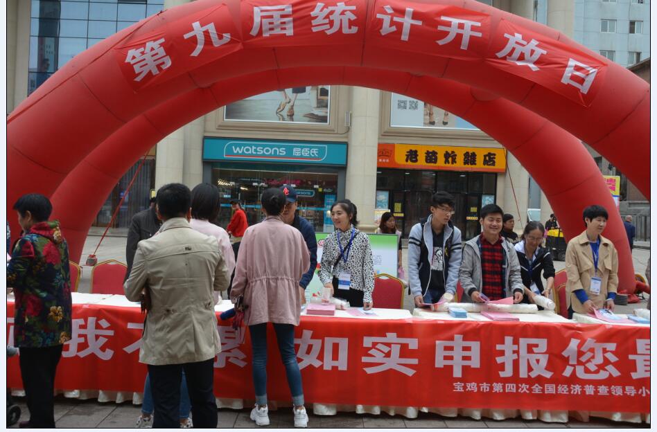 9月20日,由宝鸡市统计局、宝鸡市第四次全国经济普查领导小组办公室承办的第九届“中国统计开放日”活动在宝鸡市陈仓区虢镇金谷广场举行。现场展示了30多个大型展板,发放宣传手册1500余份、第四次经济普查告知书2000多份、标有第四次经济普查的纸杯6000多个,滚动播放统计和四经普宣传音、视频,并将活动过程制作成了微博、微信宣传片等进行宣传。12个县区及高新区都在同一天各自县域内迅速开展了宣传活动,并借助电视、报纸、广播等传统媒体和微博、微信、客户端等网络新媒体的力量,采取灵活多样的形式,扩大、提升宣传效果,将“中国统计开放日”宣传覆盖到全市千家万户。市经普办主任张艳丽接受了宝鸡电视台、宝鸡日报社、宝鸡新闻网联合采访。