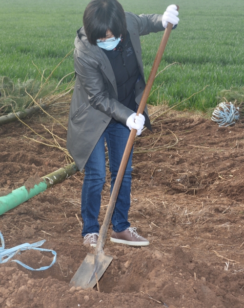 金台区蟠龙大道南侧植树现场热火朝天,在党组书记、局长王丽的带领下,30名干部职工干劲十足,分工协作、齐心协力,挥锹挖土、扶苗填坑,共种下30棵树苗,用辛勤的汗水为建设宜居美丽幸福宝鸡贡献力量。