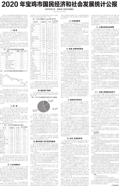 3月18日,宝鸡市统计局联合国家统计局宝鸡调查队在《宝鸡日报》、宝鸡市统计局官网、“宝鸡统计”微博和微信公众号同步发布《2020年宝鸡市国民经济和社会发展统计公报》。