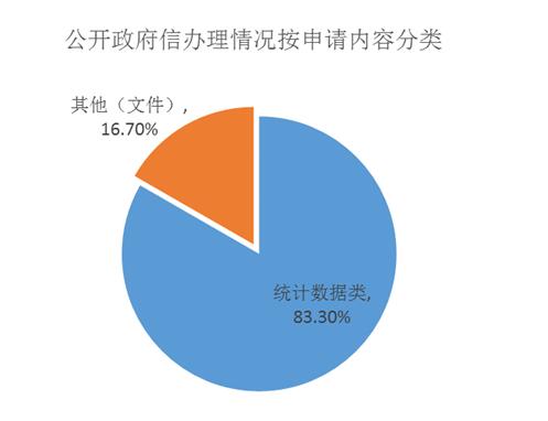 按申请内容分:统计数据类占申请总量的83.3%,较去年有较大增幅,其他(文件)占16.7%。