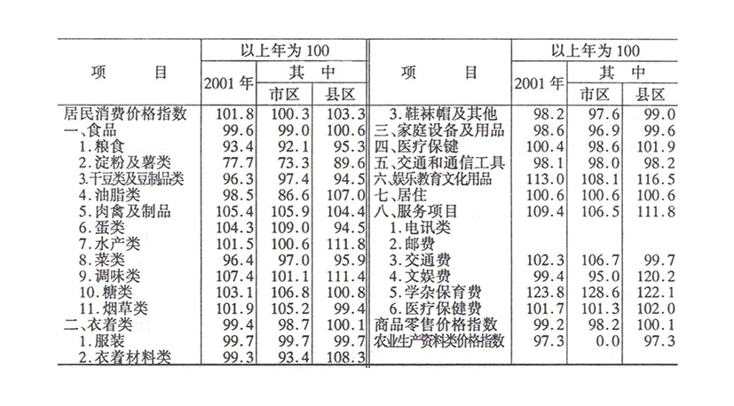 【2001年度】城镇物价指数