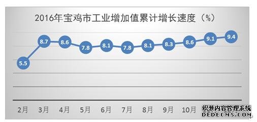 2016年,宝鸡市规模以上工业企业完成工业总产值2907.55亿元,增长12.2%。实现工业增加值887.80亿元,比上年增长9.4%,增速较前三季度提升1.1个百分点。图二