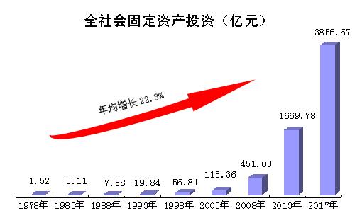 项目建设成就斐然。十一届三中全会召开后,建设领域进行了一系列经济体制改革,掀起新一轮建设热潮,投资主体逐步多元化,投资规模逐步扩大,从而给宝鸡经济建设注入了新的生机和活力。2017年,宝鸡市完成全社会固定资产投资3856.67亿元,达到1978年的2541倍,期间年均增长22.3%。近年来,宝鸡市委、市政府采取了一系列措施实施项目带动战略,带动投资持续高速增长,进入新世纪以来,投资年均增速达到26.7%。四十年来,实施了一批工业重点项目,宝钛工业园、大唐宝鸡热电、麟游郭家河井田、崔木煤矿、蒙牛工业园、眉县农夫山泉、吉利汽车等项目建成投产;实施了一批重大交通工程项目,连霍高速、宝平高速、连霍高速宝鸡市区过境线、建成通车,西宝、宝兰高速铁路客运专线建成通车。实施了一批城市建设项目,实施“东扩南移北上”发展战略,建成 “四横十纵”的市域交通网,有效扩大了宝鸡城市框架和发展空间。1990-2017年,累计完成房地产开发投资1056.95亿元,建成了开元商城、三迪广场、石鼓太阳市、盛世广场、新东岭城市综合体、东岭国金中心等一批城市综合体、商业广场和居民小区项目,大幅提升了城市品质和人居购物条件。图四